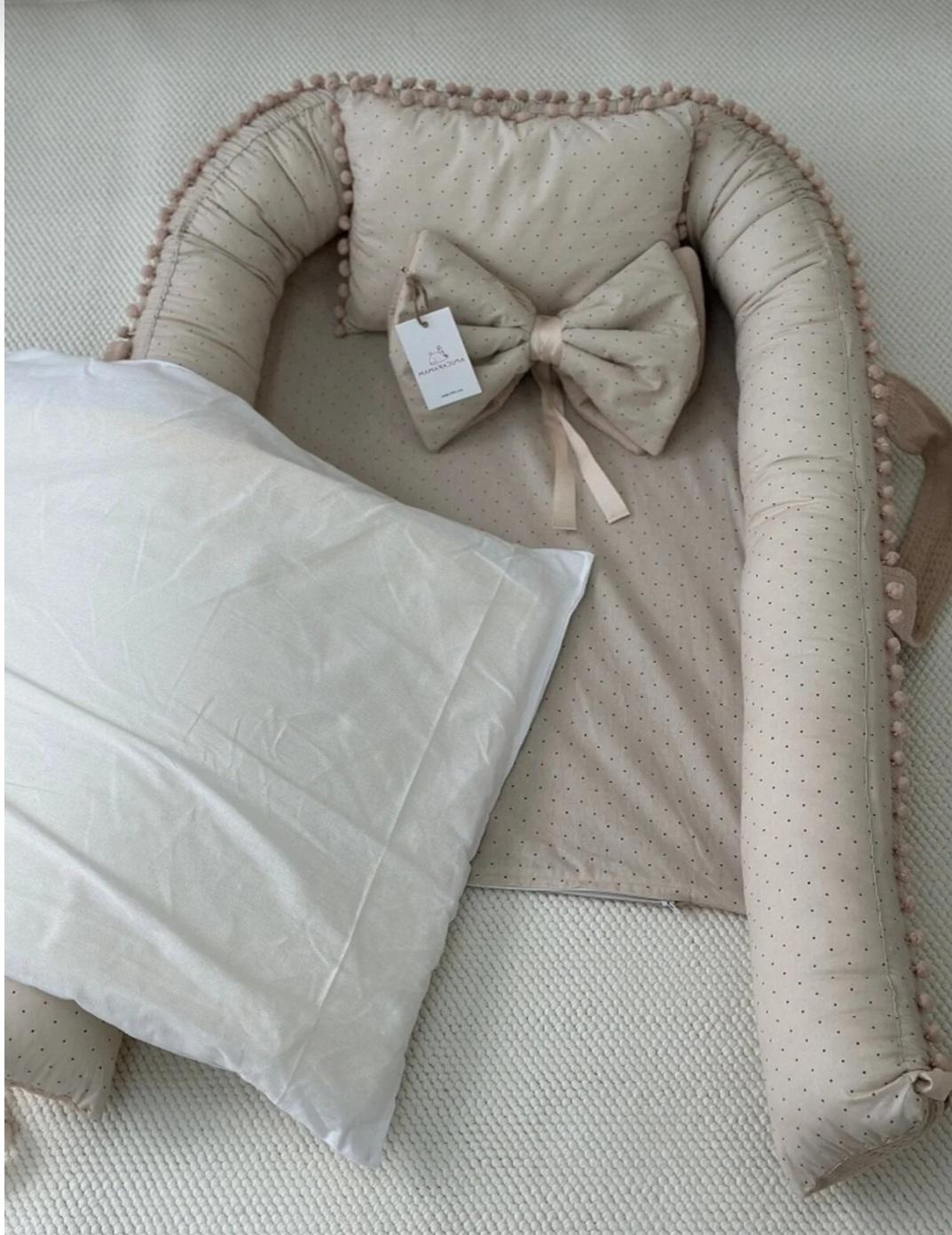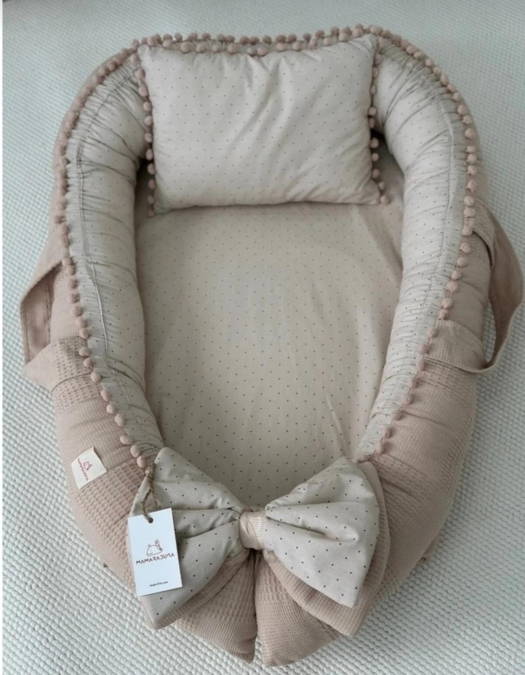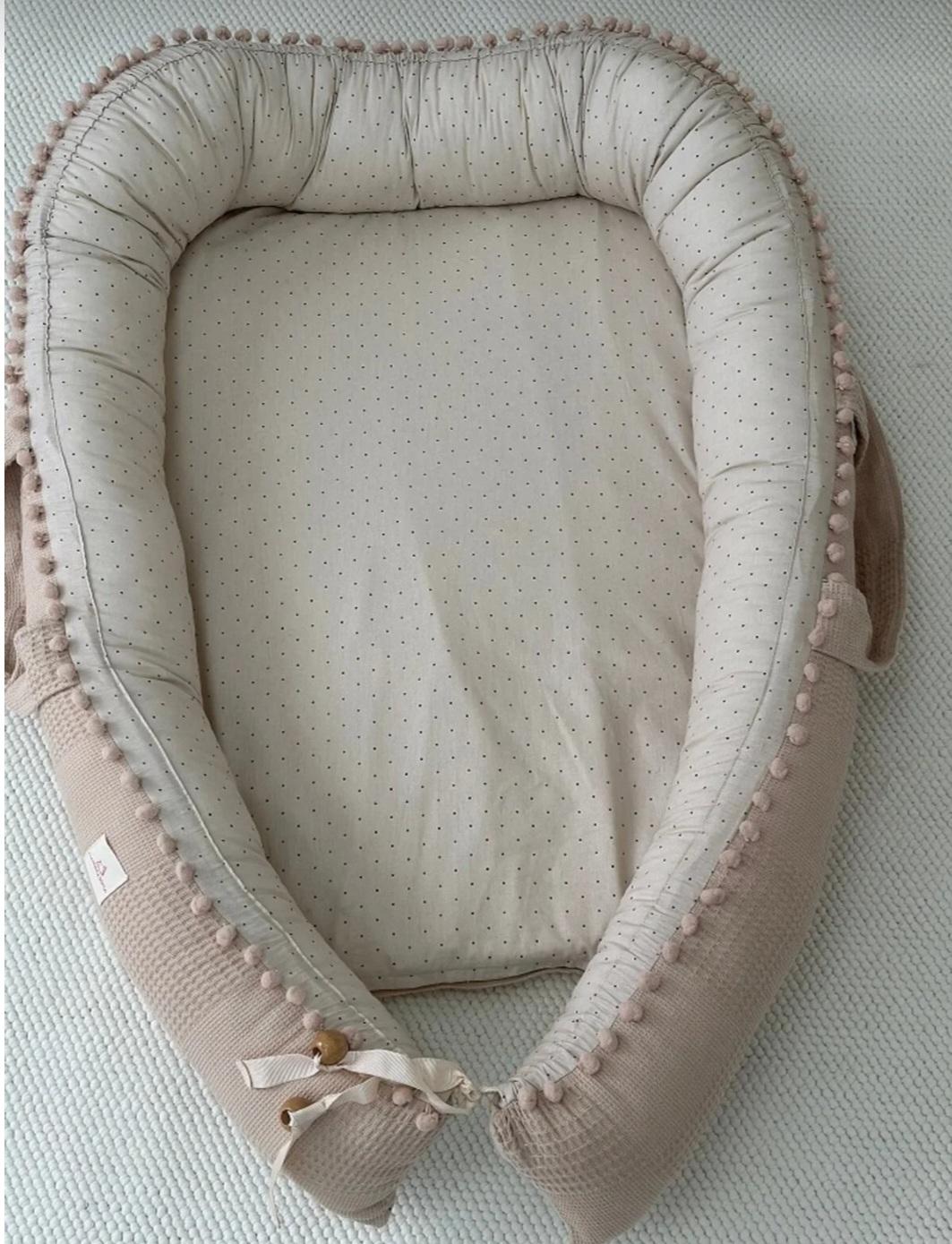 Set İçeriği 2 Parçadan Oluşmaktadır.; ; 1-Babynest (Bir Tarafı % 100 Organik Pamuk Poplin Kumaş, Bir Tarafı % 100 Pamuk Waffle Pike Kumaş Ponponlu.; ) ; 2-Babynest Baş Yastığı (Bir Tarafı % 100 Organik Pamuk Poplin Kumaş, Bir Tarafı % 100 Pamuk Waffle Pike Kumaş Ponponlu.; ) ; Genel Ürün Bilgileri: ; Babynest :Dıştan dışa : 110×85 cm İçten içe: 70×50 cm ölçülerindedir.; Babynest Baş Yastığı 23×33 cm Ölçülerindedir.; Bir Tarafı % 100 Organik Pamuk Poplin Kumaş, Bir Tarafı % 100 Pamuk Waffle Pike Kumaş Kullanılmıştır.; Ponponlar Şık Bir Hava Katar.; Nem ve Buharı emen 1. kalite sünger ve 1. kalite boncuk elyaf kullanılmıştır.; Bebeği terletmez ve koku yapmaz.; Fermuarlı iç astara sahip, çamaşır makinesinde yıkanabilir dikim yapılmıştır.; 2 Yaşa kadar kullanabilir.; ; Kullanılan bütün malzemeler 1. sınıf ve bebeğinize güvenle kullanabileceğiniz ve sevgi ile üretilmiş ürünlerden üretilmiştir.; Yıkanabilir Ürünleri 30 Derecede Yıkamanız ,Ürünleri Daha Uzun Ömürlü Kullanmanız Açısından Önemlidir.; ; ÜRÜNLERE SEVGİMİZİ KATTIK SİZ GÜVENLE KULLANIN DİYE :) ; TÜRKİYE'DE ÜRETİLMİŞTİR.; ; BEBEĞİNİZ İLE BİRLİKTE SAĞLIKLI GÜNLERDE KULLANMANIZ DİLEGİYLE.; ; ;
