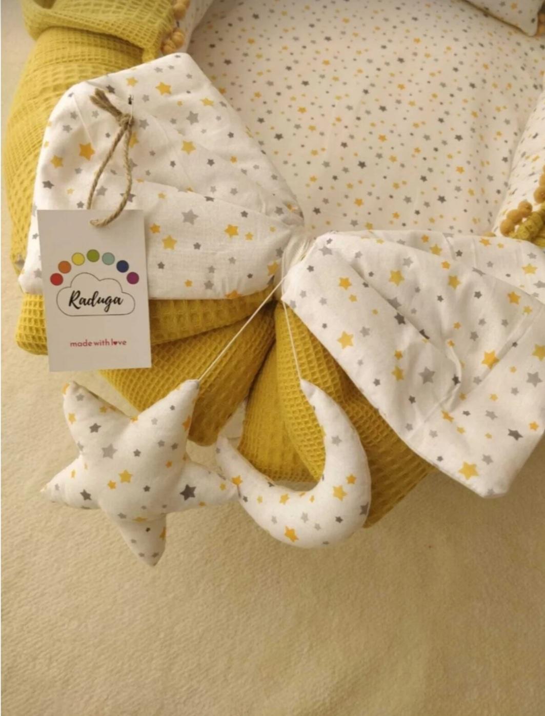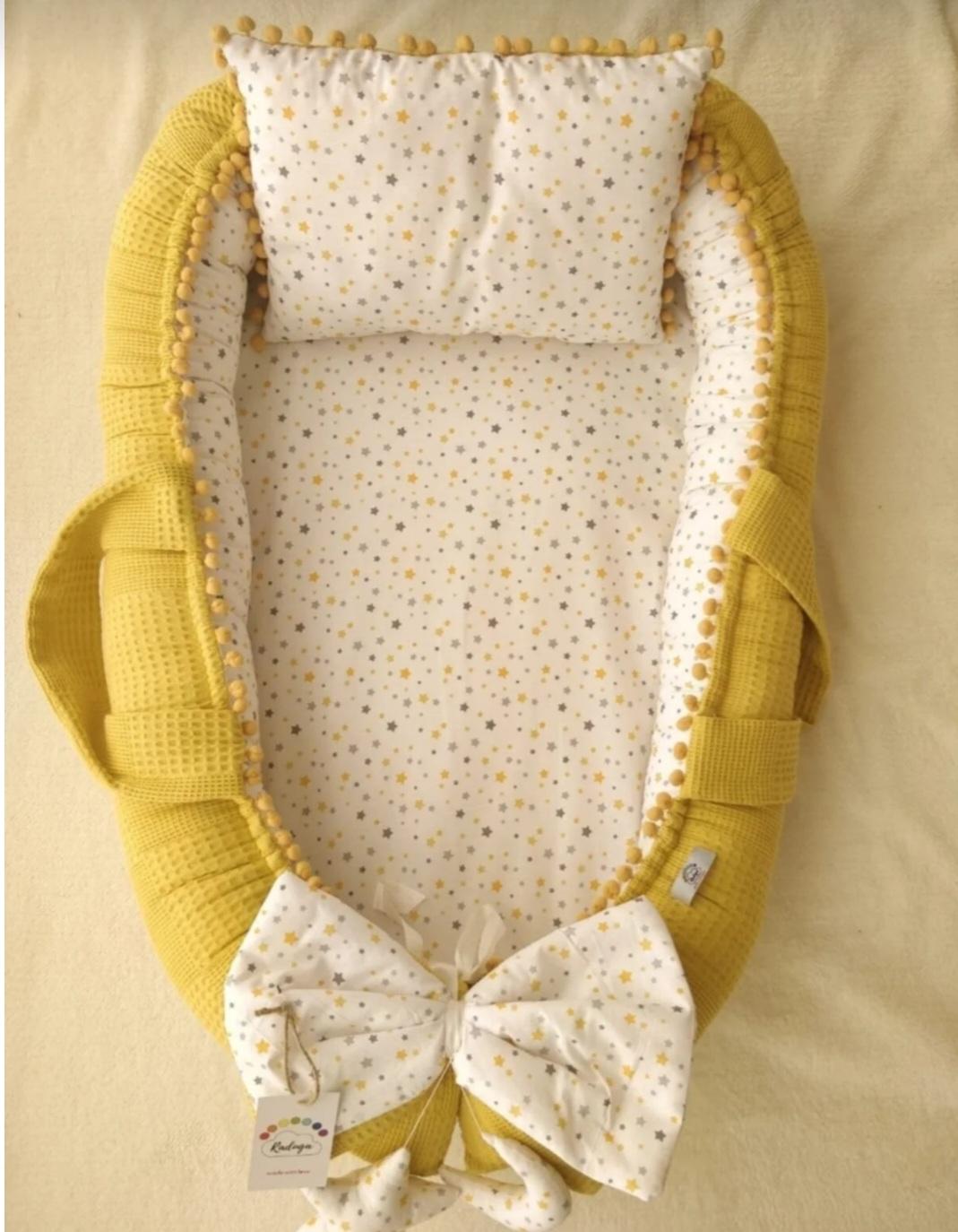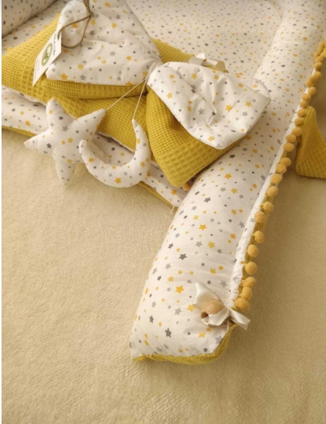 Set İçeriği 2 Parçadan Oluşmaktadır. ; 1-Babynest (Bir Tarafı % 100 Organik Pamuk Poplin Kumaş, Bir Tarafı % 100 Pamuk Waffle Pike Kumaş Ponponlu.) ; 2-Babynest Baş Yastığı (Bir Tarafı % 100 Organik Pamuk Poplin Kumaş, Bir Tarafı % 100 Pamuk Waffle Pike Kumaş Ponponlu.) ; Genel Ürün Bilgileri: ; Babynest :Dıştan dışa : 110×85 cm İçten içe: 70×50 cm ölçülerindedir. Babynest Baş Yastığı 23×33 cm Ölçülerindedir. Bir Tarafı % 100 Organik Pamuk Poplin Kumaş, Bir Tarafı % 100 Pamuk Waffle Pike Kumaş Kullanılmıştır. Ponponlar Şık Bir Hava Katar. Nem ve Buharı emen 1. kalite sünger ve 1. kalite boncuk elyaf kullanılmıştır. Bebeği terletmez ve koku yapmaz. Fermuarlı iç astara sahip, çamaşır makinesinde yıkanabilir dikim yapılmıştır. 2 Yaşa kadar kullanabilir. ; Kullanılan bütün malzemeler 1. sınıf ve bebeğinize güvenle kullanabileceğiniz ve sevgi ile üretilmiş ürünlerden üretilmiştir. Yıkanabilir Ürünleri 30 Derecede Yıkamanız ,Ürünleri Daha Uzun Ömürlü Kullanmanız Açısından Önemlidir. ; ÜRÜNLERE SEVGİMİZİ KATTIK SİZ GÜVENLE KULLANIN DİYE :) ; TÜRKİYE'DE ÜRETİLMİŞTİR. ; BEBEĞİNİZ İLE BİRLİKTE SAĞLIKLI GÜNLERDE KULLANMANIZ DİLEGİYLE. ;