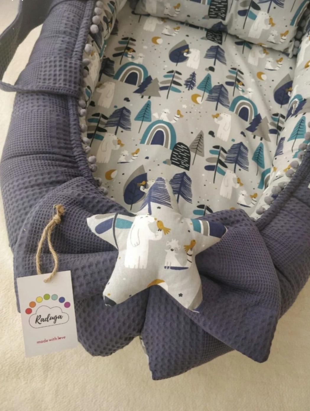 Set İçeriği 2 Parçadan Oluşmaktadır. ; 1-Babynest (Bir Tarafı % 100 Organik Pamuk Poplin Kumaş, Bir Tarafı % 100 Pamuk Waffle Pike Kumaş Ponponlu.) ; 2-Babynest Baş Yastığı (Bir Tarafı % 100 Organik Pamuk Poplin Kumaş, Bir Tarafı % 100 Pamuk Waffle Pike Kumaş Ponponlu.) ; Genel Ürün Bilgileri: ; Babynest :Dıştan dışa : 110×85 cm İçten içe: 70×50 cm ölçülerindedir. Babynest Baş Yastığı 23×33 cm Ölçülerindedir. Bir Tarafı % 100 Organik Pamuk Poplin Kumaş, Bir Tarafı % 100 Pamuk Waffle Pike Kumaş Kullanılmıştır. Ponponlar Şık Bir Hava Katar. Nem ve Buharı emen 1. kalite sünger ve 1. kalite boncuk elyaf kullanılmıştır. Bebeği terletmez ve koku yapmaz. Fermuarlı iç astara sahip, çamaşır makinesinde yıkanabilir dikim yapılmıştır. 2 Yaşa kadar kullanabilir. ; Kullanılan bütün malzemeler 1. sınıf ve bebeğinize güvenle kullanabileceğiniz ve sevgi ile üretilmiş ürünlerden üretilmiştir. Yıkanabilir Ürünleri 30 Derecede Yıkamanız ,Ürünleri Daha Uzun Ömürlü Kullanmanız Açısından Önemlidir. ; ÜRÜNLERE SEVGİMİZİ KATTIK SİZ GÜVENLE KULLANIN DİYE :) ; TÜRKİYE'DE ÜRETİLMİŞTİR. ; BEBEĞİNİZ İLE BİRLİKTE SAĞLIKLI GÜNLERDE KULLANMANIZ DİLEGİYLE.