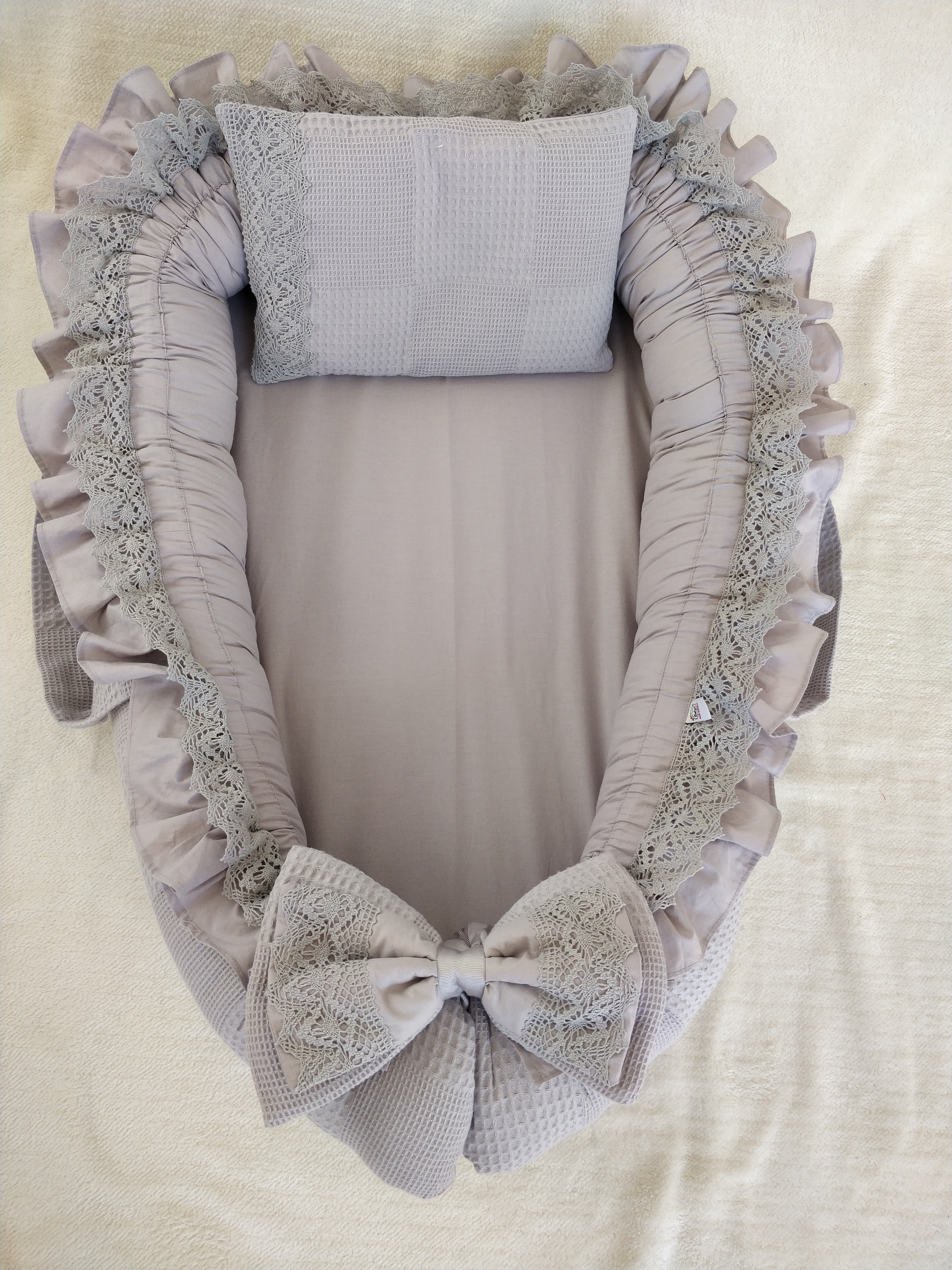 - 1-Babynest (Bir Tarafı % 100 Organik Pamuk Poplin Kumaş, Bir Tarafı % 100 Pamuk Waffle Pike Kumaş Dantelli Ve Fırfırlı..)