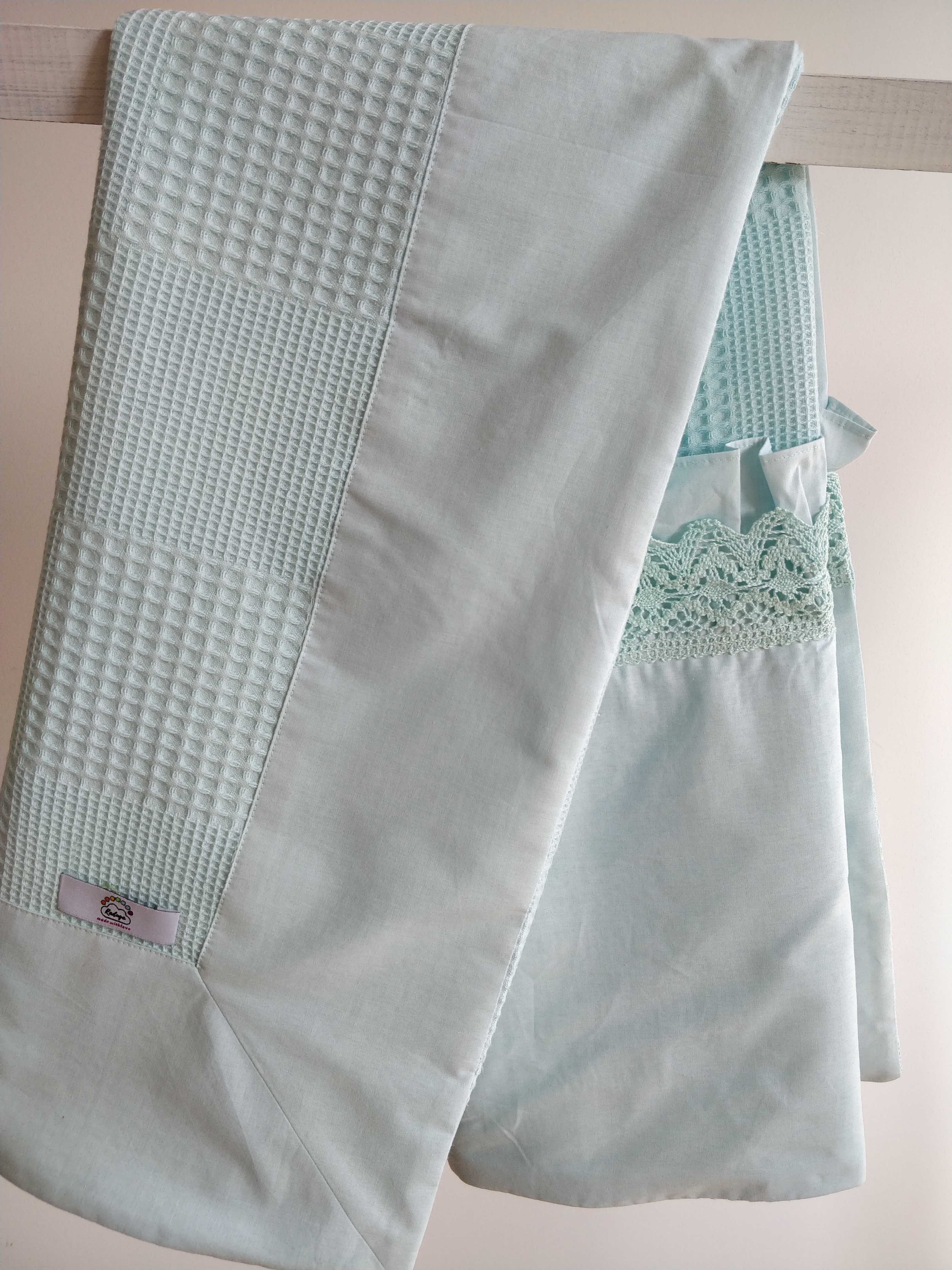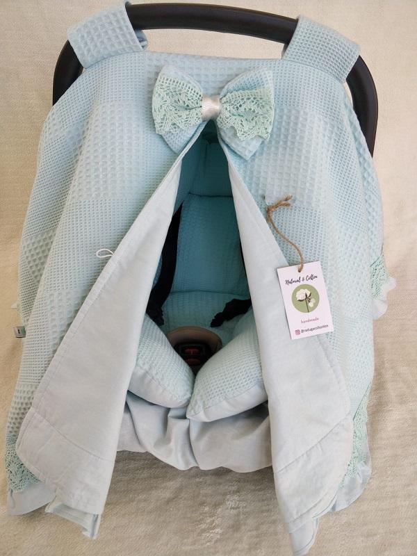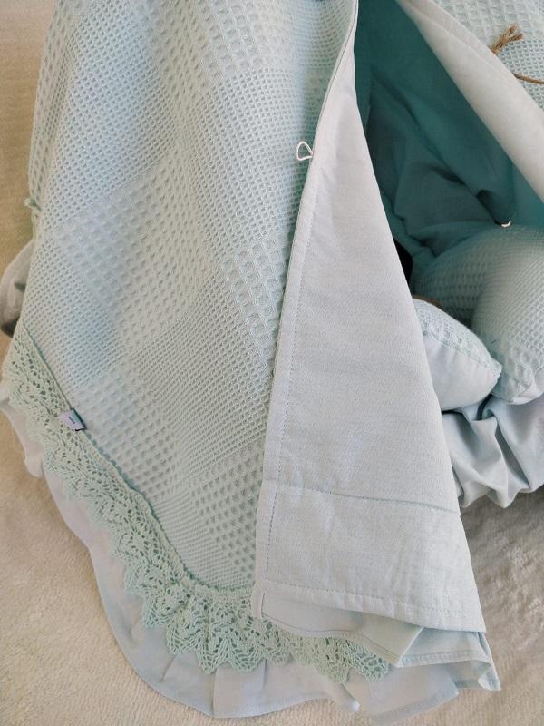 • 5-Puset Örtüsü (Bir Tarafı % 100 Organik Pamuk Poplin Kumaş, Bir Tarafı % 100 Pamuk Waffle Pike Kumaş  Dantelli Ve Fırfırlı..)