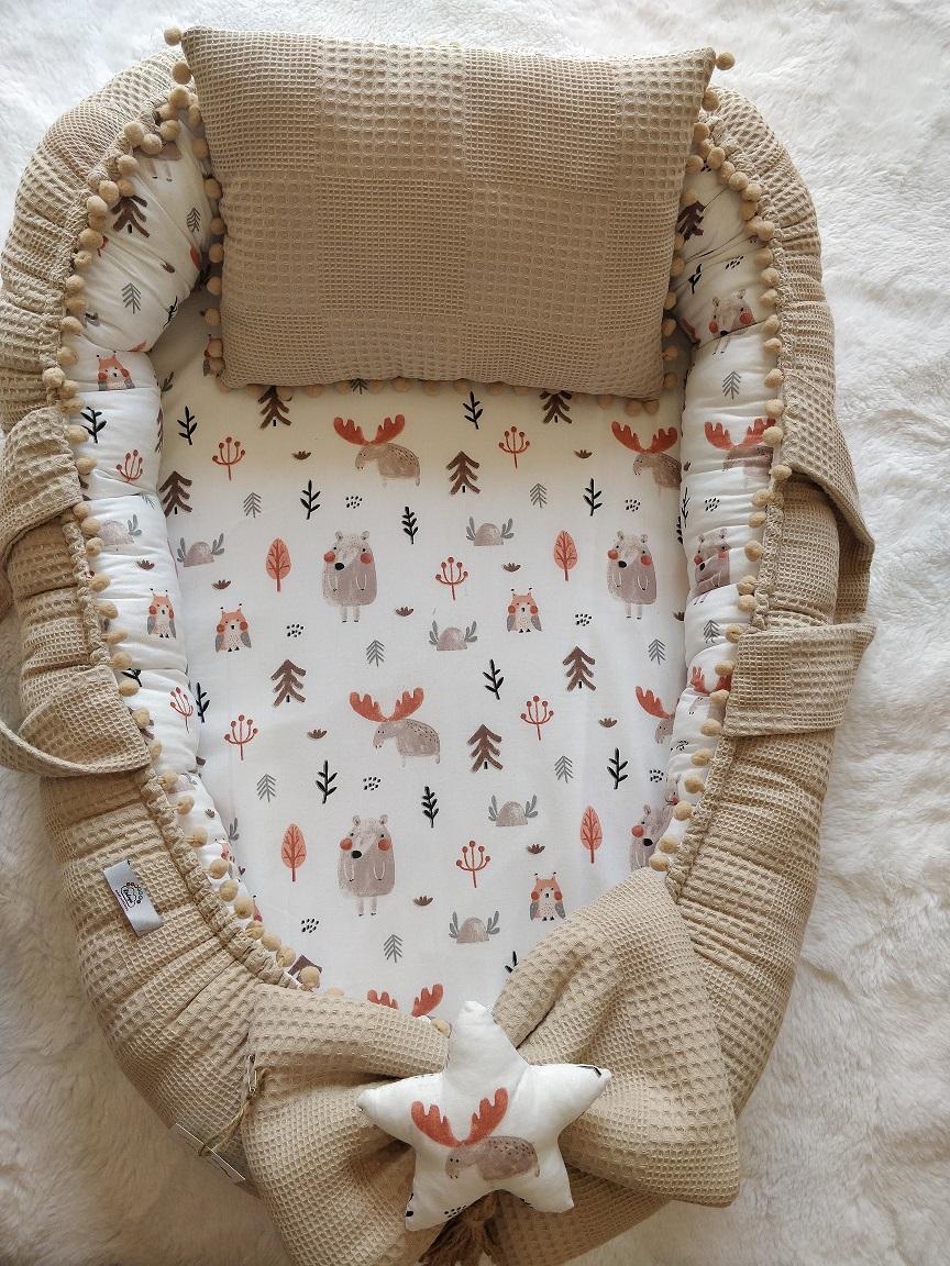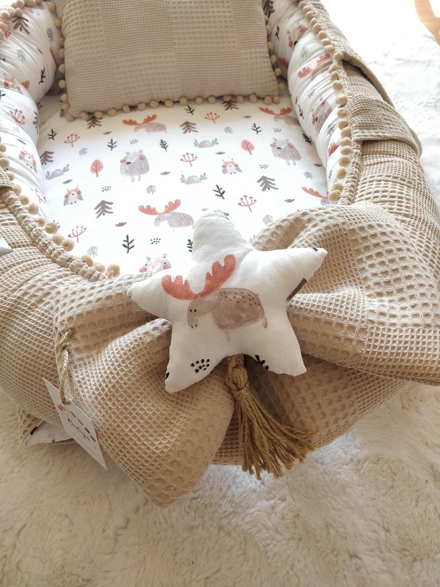 - 1-Babynest (Bir Tarafı % 100 Organik Pamuk Poplin Kumaş, Bir Tarafı % 100 Pamuk Waffle Pike Kumaş Ponponlu.)