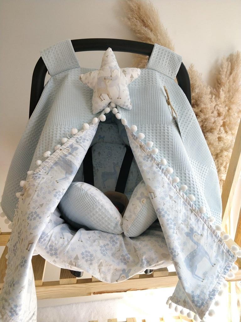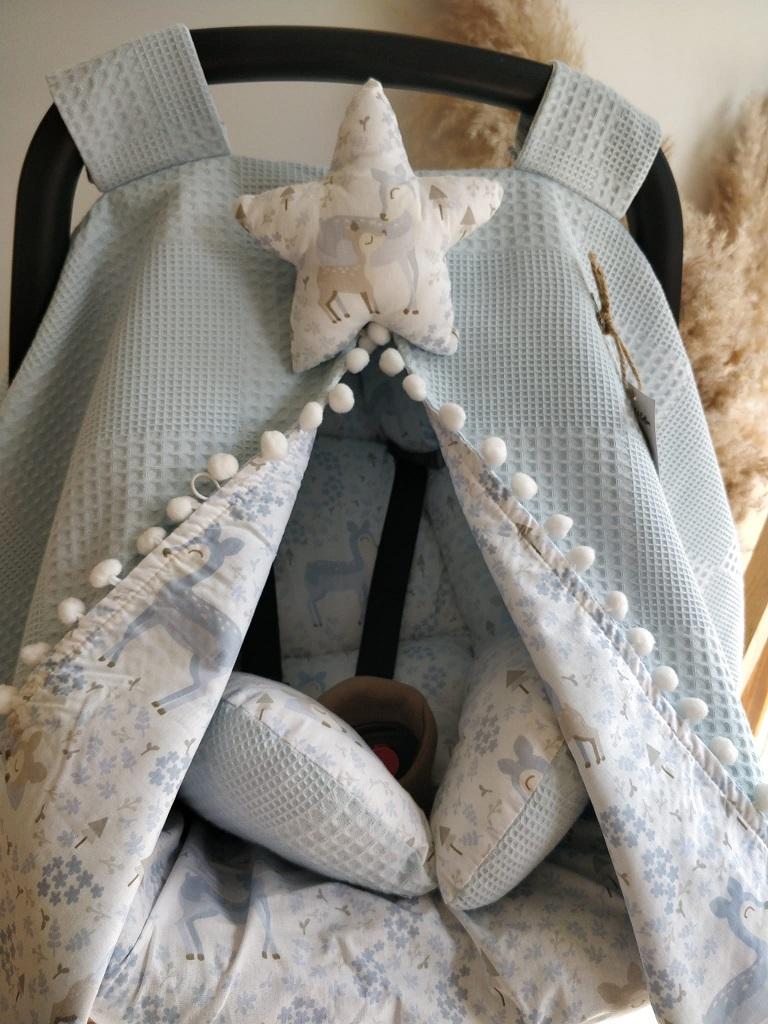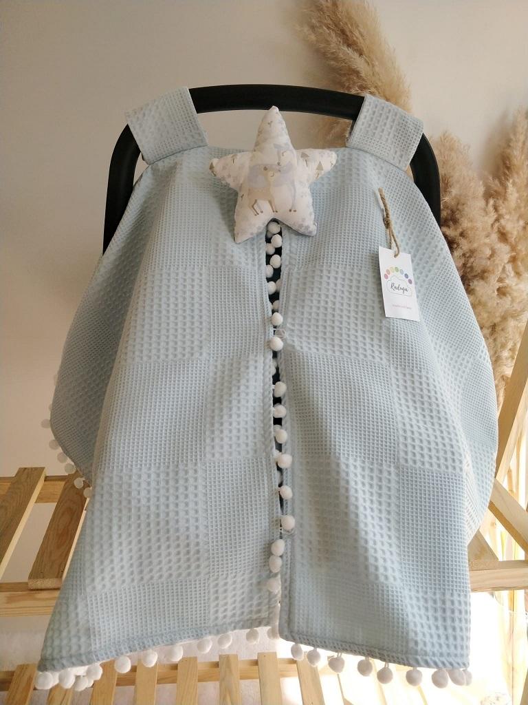 - Çift Taraflı Puset Örtüsü (Bir Tarafı 100% Organik Pamuk Poplin Kumaş, Bir Tarafı 100% Pamuk Waffle Pike Kumaş.Sıralı Ponpon Süslemeli).