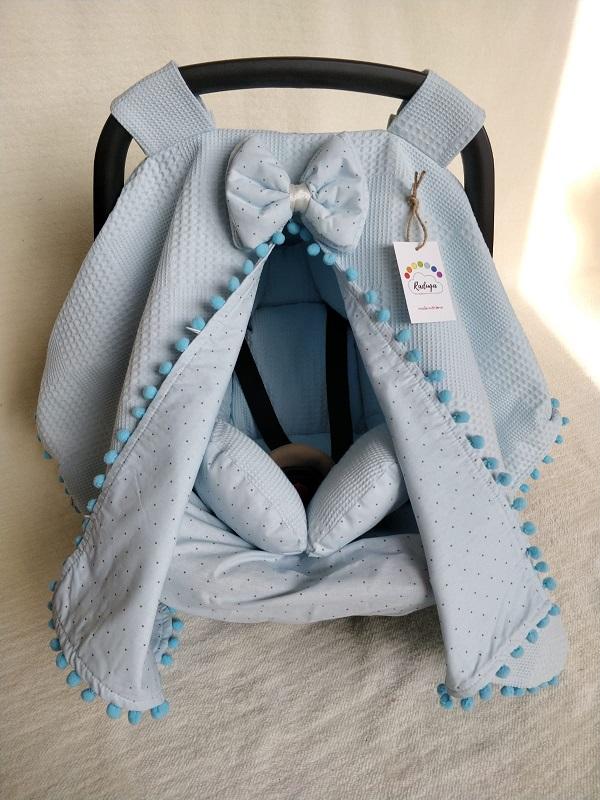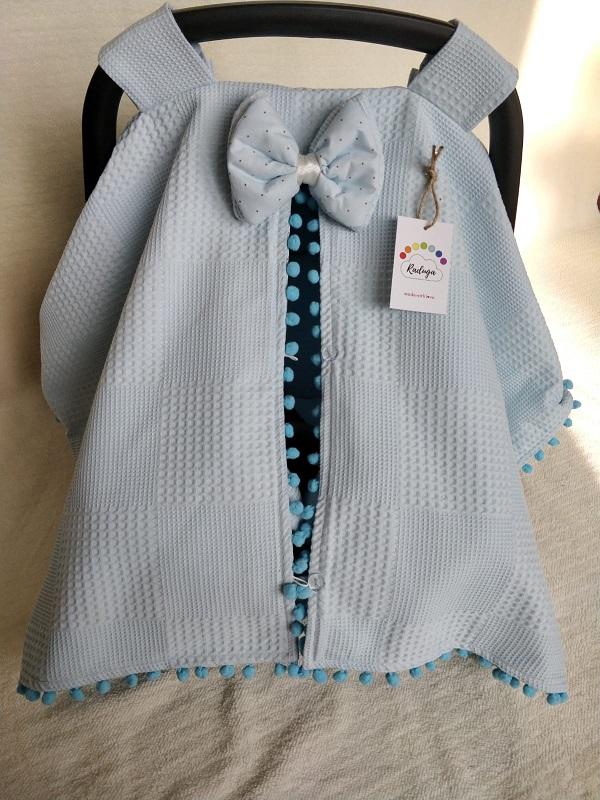 - Çift Taraflı Puset Örtüsü (Bir Tarafı 100% Organik Pamuk Poplin Kumaş, Bir Tarafı 100% Pamuk Waffle Pike Kumaş.Sıralı Ponpon Süslemeli).