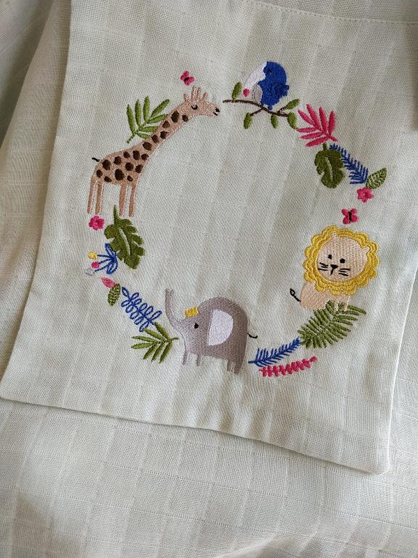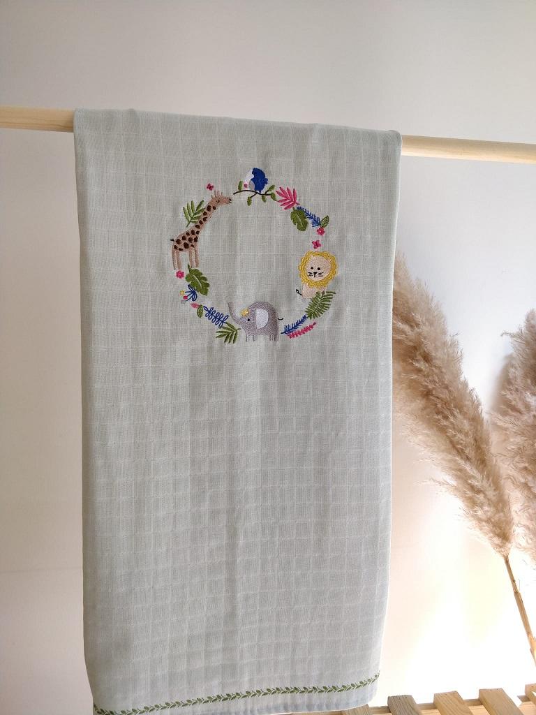 • Çift Katlı Müslin Bebek Battaniyesi Nakışlı.)