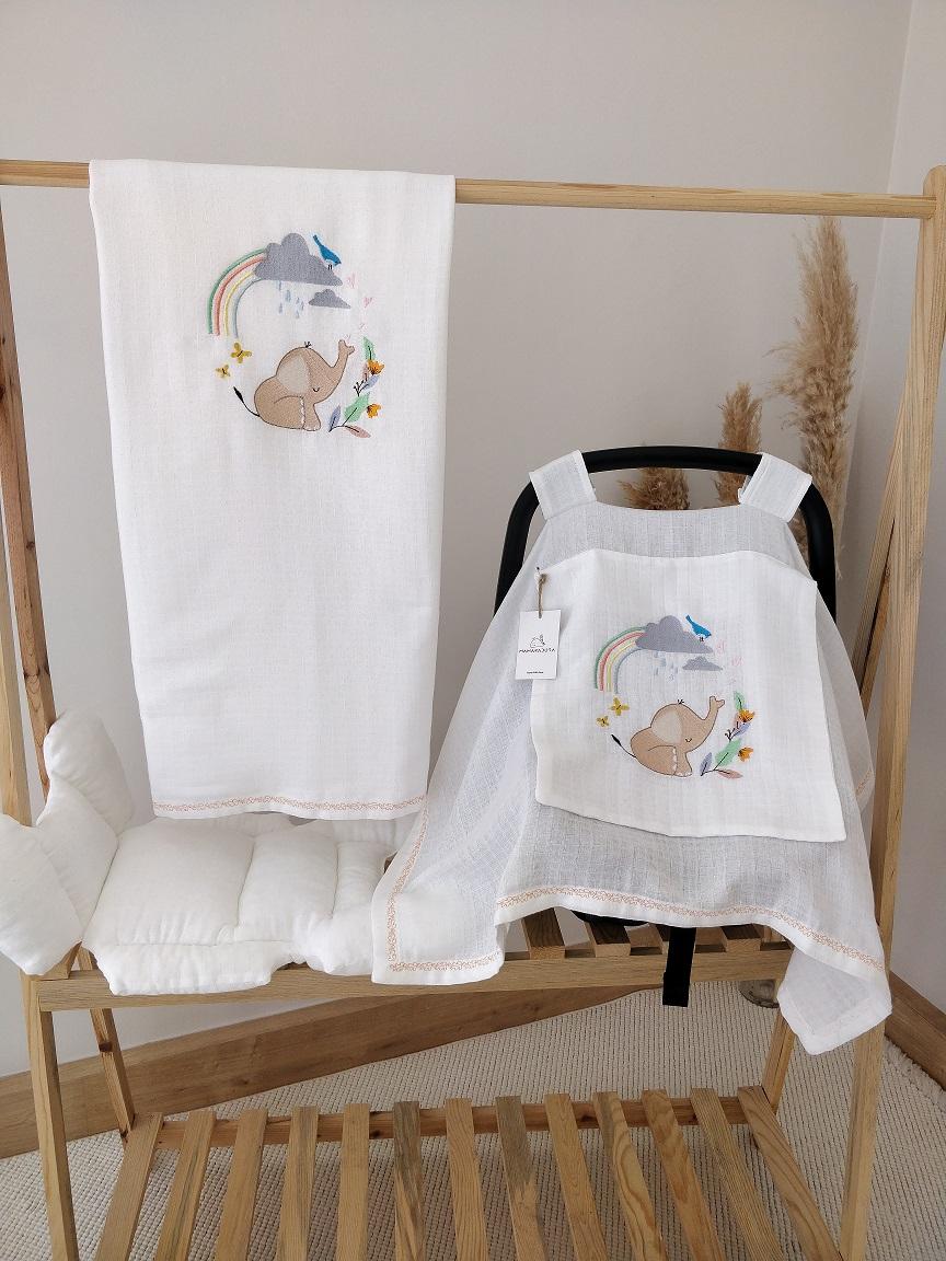 - Çift Katlı Müslin Bebek Battaniyesi Nakışlı.)