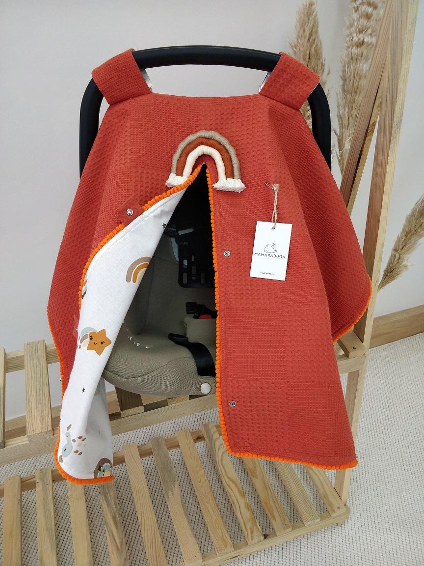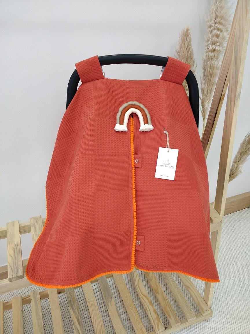 - Çift Taraflı Puset Örtüsü (Bir Tarafı % 100 Pamuk Waffle Pike Kumaş ve Minik Sıralı Ponpon Süslemeli.)